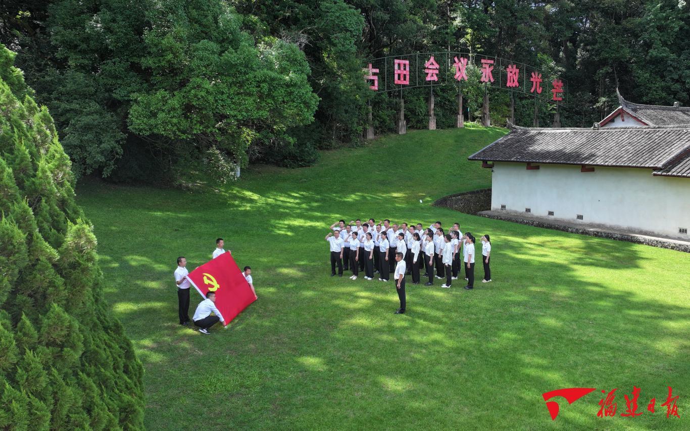上杭县古田镇党员干部在古田会议会址举行“重温入党誓词、传承红色基因”主题活动。杨国鑫 罗小春 摄