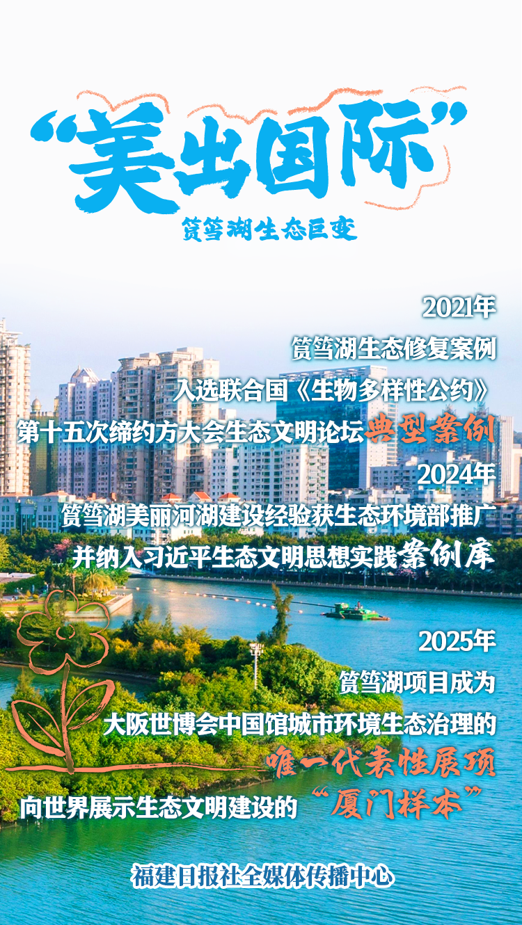 如今,筼筜湖治理工作被列入中国政府对外援助项目“海岸带综合管理”研修课程,面向全球100多个发展中国家、近2000多名官员和技术人员开展培训和经验推广。筼筜湖生态修复项目助力厦门成为了全球海湾型城市高水平生态修复的典范。