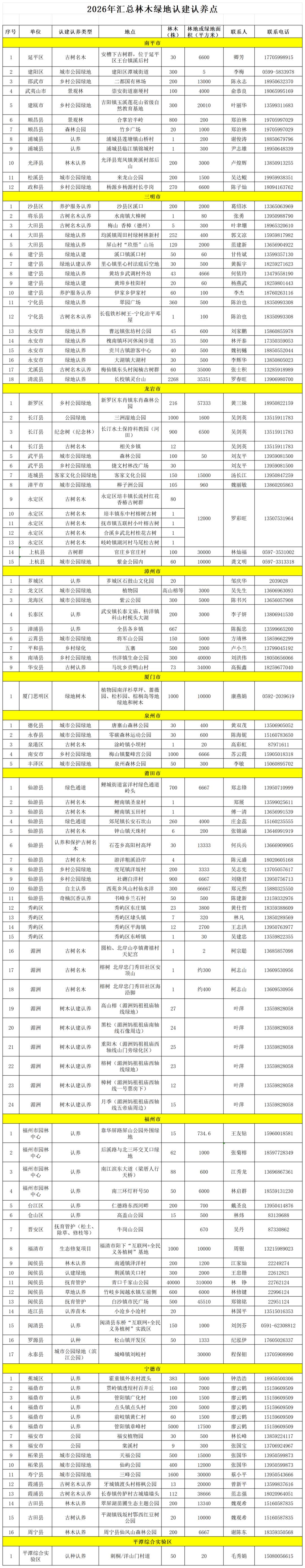 2026年汇总林木绿地认建认养点