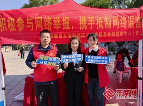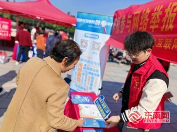 东南网3月16日讯(本网记者 冯旭 王晨丽 文/图)3月13日下午,福州西湖公园晨曦广场人头攒动,热闹非凡。福建省互联网违法与不良信息举报受理中心联合鼓西街道西湖社区举办的“积极参与网络举报 携手抵制网络谣言”网络举报辟谣宣传活动在此举行,吸引了众多市民及游客积极参与。
