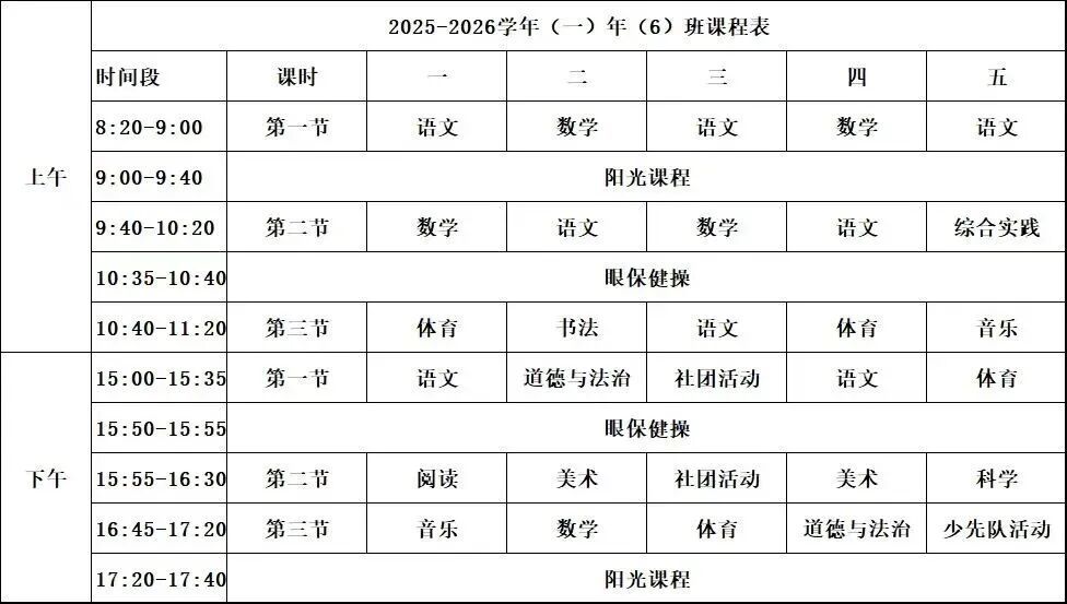 将课间10分钟延长至15分钟 目前 漳州市、厦门市 在义务教育阶段学校开始推行 此次课间时长调整 是落实教育部、省教育厅关于 加强中小学体育工作、 优化课间管理的具体举措, 也是深化 “ 双减 ” 促进学生全面发展的重要实践 此前 省教育厅明确要求 义务教育阶段学校 将课间活动时间 延长至15分钟 01 漳州市 目前,漳州市多所义务教育阶段学校将课间10分钟延长至15分钟,同步落实每天不少于30分钟大课间体育活动,确保学生每天校内综合体育活动时间不低于2小时。 漳州结合本地实际,细化实施方案,明确“一校一案”制定作息调整细则,通过优化课时编排、精简衔接环节、规范课后服务时间等方式,确保课间改革平稳落地。 早在去年,漳州部分学校便率先探索课间时长调整。 以龙师附小为例,该校一年级作息表中,常规课间均设置为15分钟,覆盖上午10:20—10:35、下午15:35—15:50及16:30—16:45等时段。
