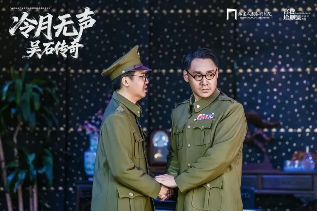 《冷月无声——吴石传奇》由福建省文化和旅游厅指导、福建人民艺术剧院打造,以电视剧《沉默的荣耀》为蓝本,扎根《冷月无声——吴石传》扎实史料,用“现实重逢+历史回溯”的双线叙事结构,让观众跟随吴石之子吴韶成与何遂之子何康的视角,完成一场穿越时空的精神之旅。