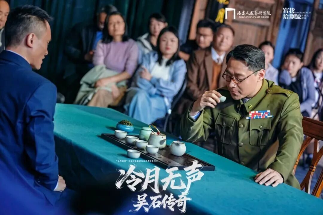 演出选址三坊七巷宫巷18号吴石旧居比邻古厝,融入福州方言、童谣、茉莉花茶等地域特色,沉浸式设计让观众参与剧情,四幕主线搭配支线的叙事方式,让观众被吴石的隐忍深深打动。