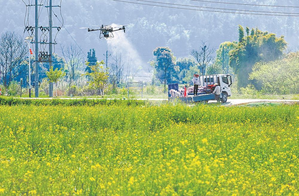 17日,在沙县区夏茂镇长阜村700亩全程机械化再生稻高产高效示范片,一架无人机在一天内完成了全部土壤调节剂喷洒作业。据承包该片的沙县慧农种植专业合作社负责人刘传灿介绍,完成同等工作量,如果人工作业,至少需要60人。无人机的参与,大幅提升了春耕备耕的效率。近年来,沙县大力推广农业机械化作业,有效解决了当地劳动力外流,农业用工稀缺的难题。俞和江 罗文真 摄