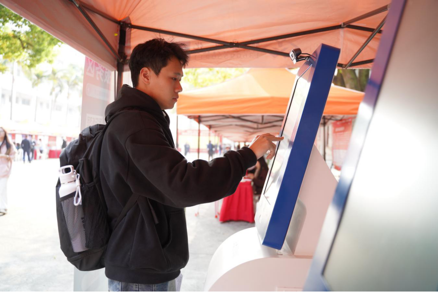 招聘会现场求职者体验AI赋能就业。