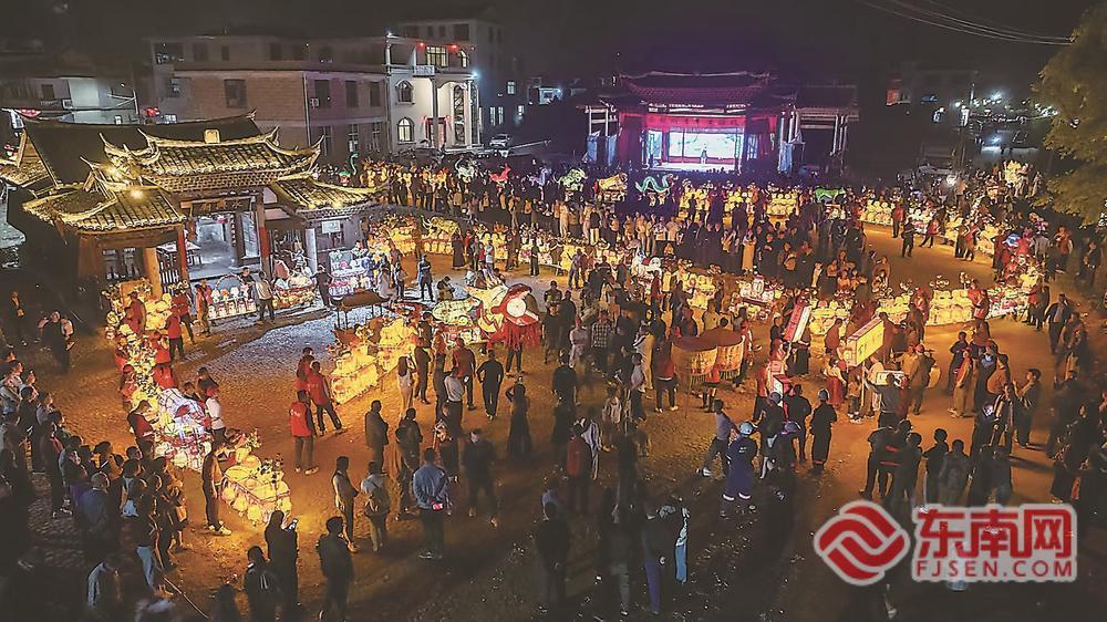 20日晚,连城县莒溪镇璧洲古村灯火璀璨,有着800年历史的客家非遗民俗——璧洲“二月二”游灯笼活动热闹启幕。 福建日报通讯员 黄水林 见习记者 王志豪 摄