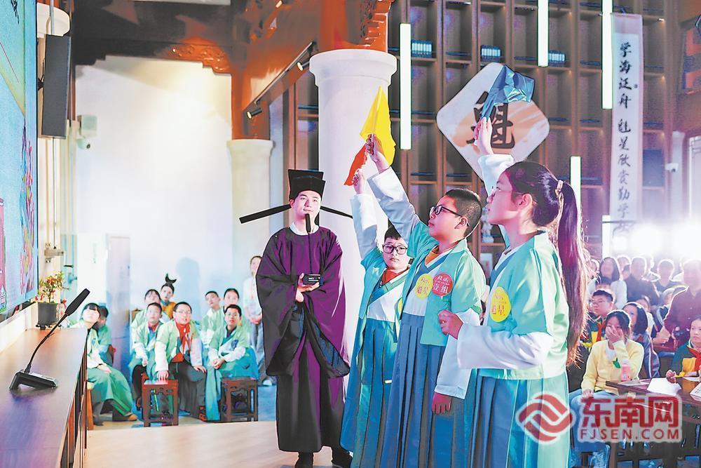 东南网3月22日讯(福建日报记者 汤海波 摄影报道)21日,2026年永春县魁星书院少年诗词大会举行。少年学子齐聚魁星岩,在“文运之地”复刻古代科举“乡试—会试—殿试”三级礼制,以诗为媒,以赛会友,通过飞花令、诗句接龙、诗词填空等多样题型比拼诗词功底,在庄重仪式与趣味竞赛中体悟中华诗词之美,解锁传统文化新体验。