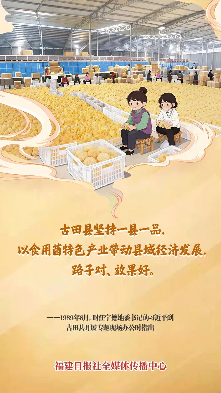 如今,古田县成为全国最大的食用菌商品化生产基地。古田银耳产量占世界的90%,世界银耳看中国,中国银耳看古田。古田县成为践行大食物观“优等生”之一。