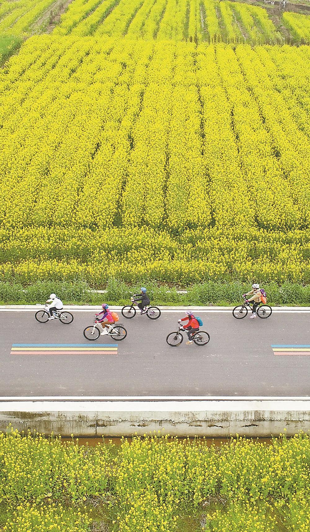 3月22日,南平市浦城县仙阳镇麒麟畈油菜花田间,参赛选手骑行在彩虹路上。当日,第三届浦城县“闽浙赣”美丽乡村跑暨油菜花嘉年华骑游举行,吸引不少游人前来参加。黄杰敏 摄影报道