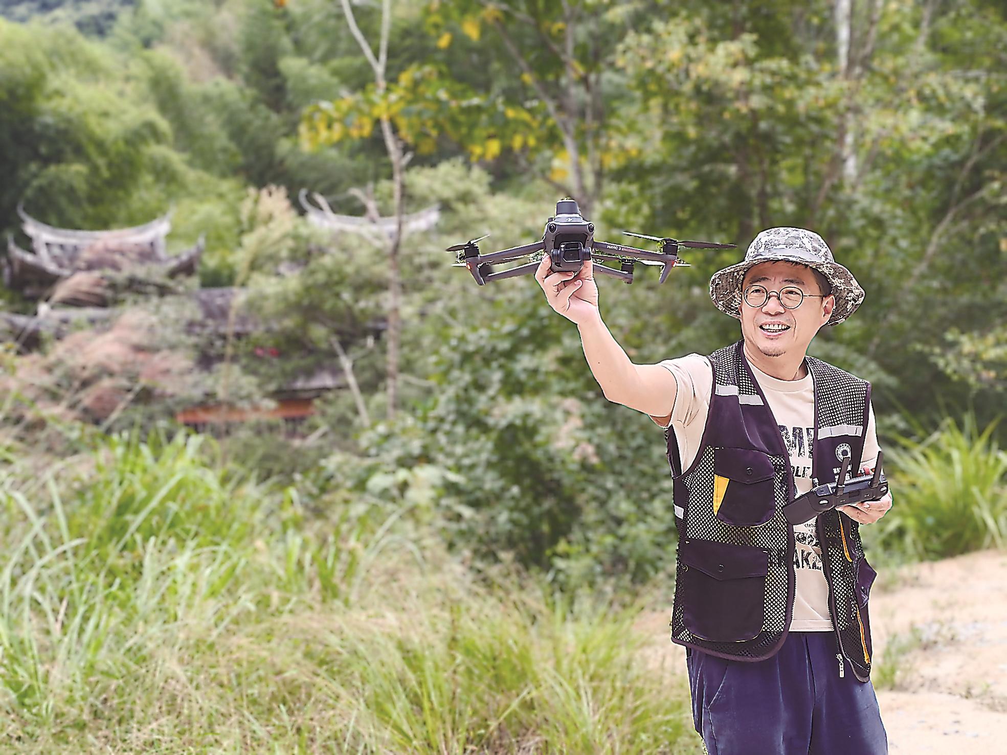 尤溪县普查队队员在操作无人机。