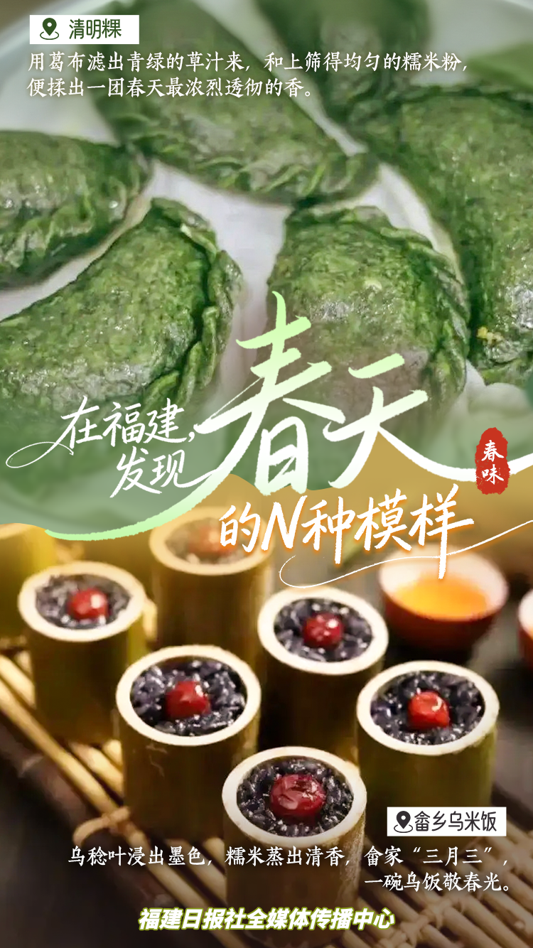 四季更替,适时而食。从深山破土的春笋,到溪畔初绽的蕨芽;从清明时节的青草香糯,到畲乡“三月三”的乌饭清香——福建的春天,不止于目之所及的斑斓,更在舌尖流转的鲜甜。