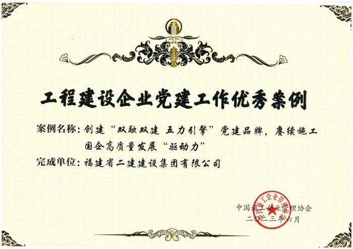 省二建集团《创建“双融双建 五力引擎”党建品牌,赓续施工国企高质量发展“驱动力”》获评中国施工企业管理协会“工程建设企业党建工作优秀案例”。