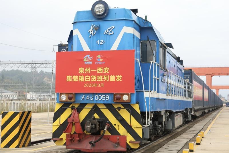 东南网3月28日讯(本网记者 冯川叶 通讯员 李翔 周敏)3月28日,一列满载20个集装箱婴儿湿巾等物品的白货班列从福建省泉州市黄塘铁路货场驶出,前往陕西西安。这是福建首次开行赴西北地区的白货班列,为东南沿海与西北腹地经贸往来增添新的高效物流通道。