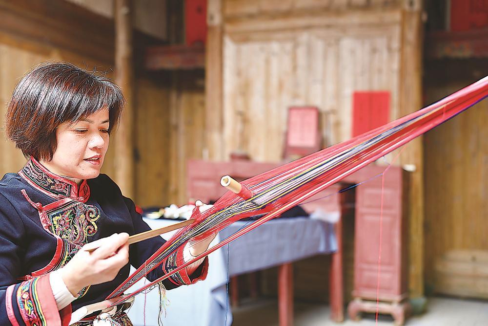 畲族服饰市场的日渐缩小,倒逼着手艺人另寻发展新路。在钟桂梅的工作室里,畲族织带、刺绣香囊等文创产品琳琅满目,“春暖花开时节,有很多团队和我们对接,通过服饰租赁的方式,让畲族服饰的美重新回到大众视野”。
