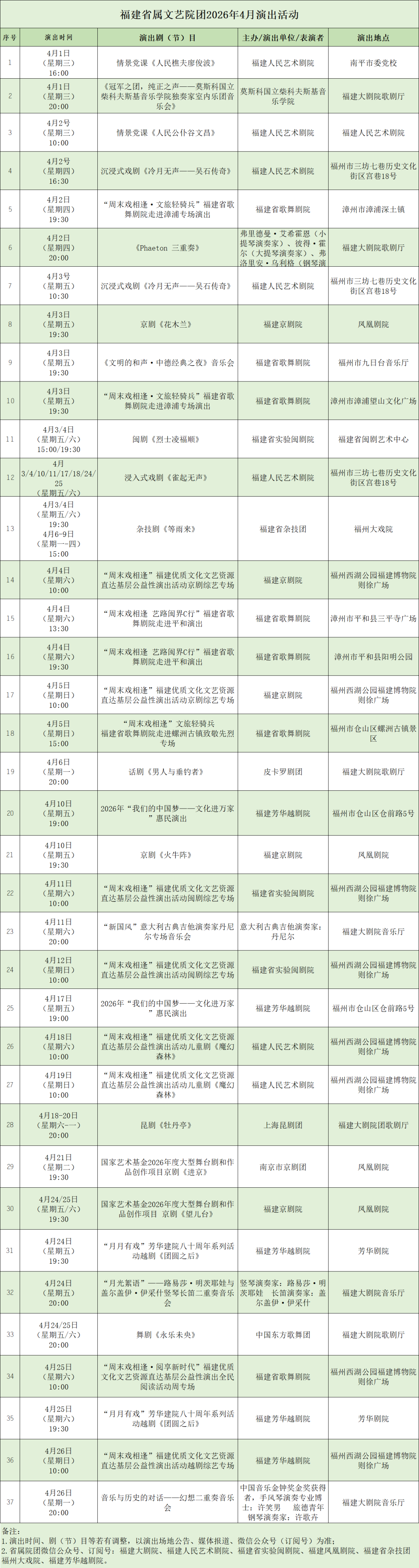 时间: 4月每周三、五、六、日19:30