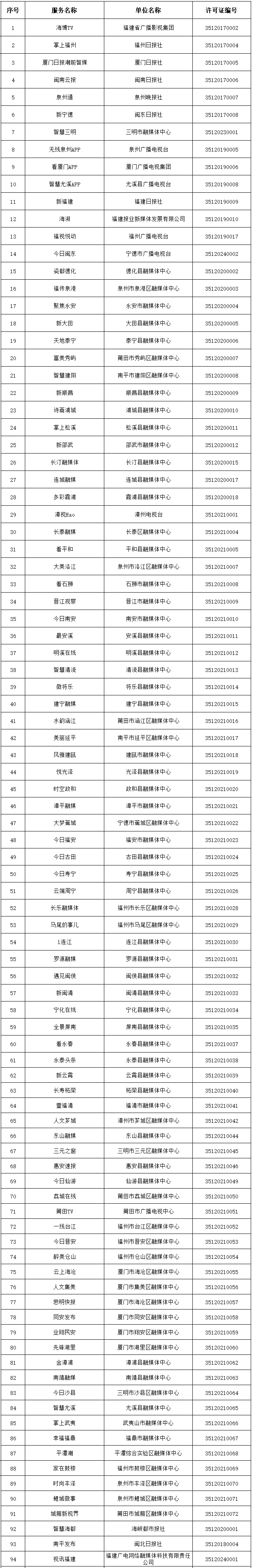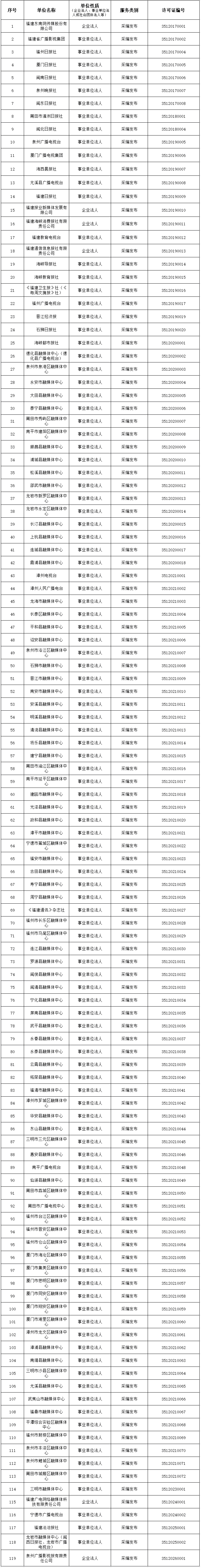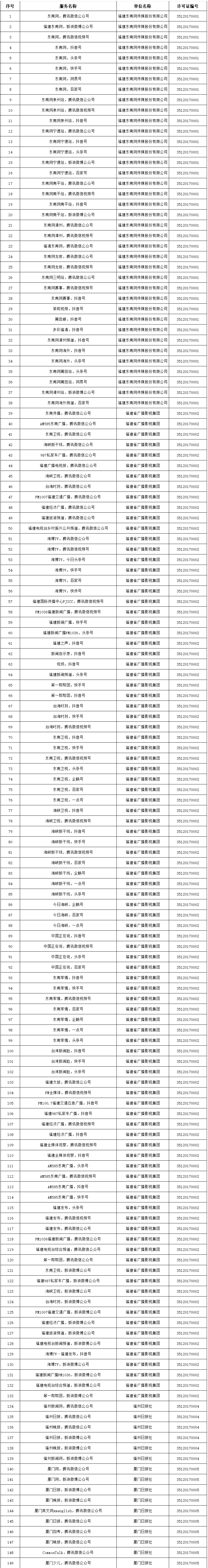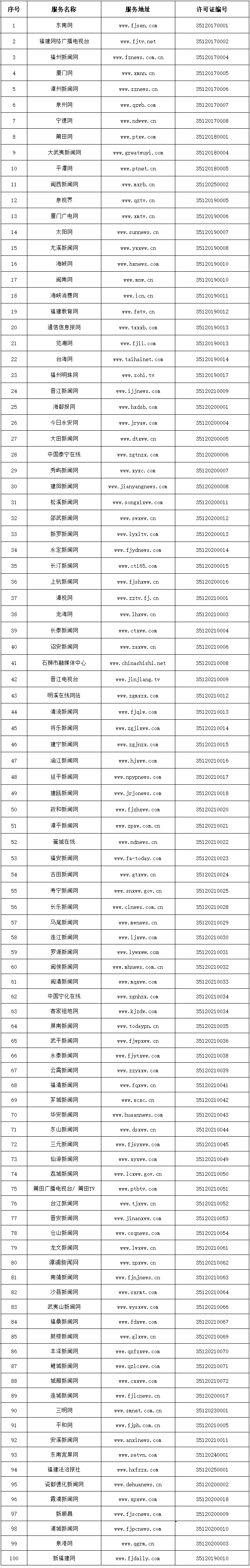 福建省互联网新闻信息服务单位许可信息