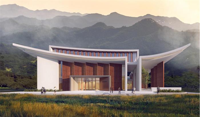 黄羲先生号“大蜚山人”,一代古典人物画宗师,以笔为魂、以墨为韵,挥毫泼墨间定格无数传世佳作,更是“仙游画派”的灵魂人物,而以他命名的博物馆,便静卧于仙气缭绕的大蜚山下,以“燕归蜚山”的设计理念来叙述了黄羲先生人生经历。博物馆的设计堪称传统与现代的结合,设计团队提取传统仙游民居的精髓,将双曲屋面的灵动、燕尾脊的雅致、红砖拼贴的厚重等极具地域特色的元素,以现代设计语言重新演绎,既还原了仙游民居的古朴韵味,又兼顾了空间的现代感与功能的合理性,恰与黄羲先生画作“入古出新”的艺术特质、文化内涵不谋而合,相得益彰。