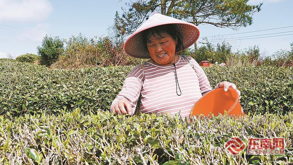近日,在闽清县下祝乡海拔近千米的麒麟山茶业基地里,采茶工人抢抓晴好天气采摘今年的第一批春茶。