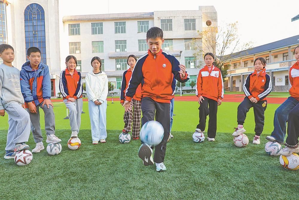 在具体实践中,学校立足学生的年龄特点,开展足球分层教学。低年级课堂以兴趣启蒙为主,通过足球小游戏、带球绕杆、趣味射门等方式,帮助学生熟悉球性、爱上足球;中年级教学聚焦基础动作,教练逐人纠正颠球、停球、传球、带球姿势,提升学生的踢球技能;高年级教学侧重战术培养,每周组织两场以上班级对抗赛,提升学生实战能力。 (通讯员 赖全平 巫秋 文/图)