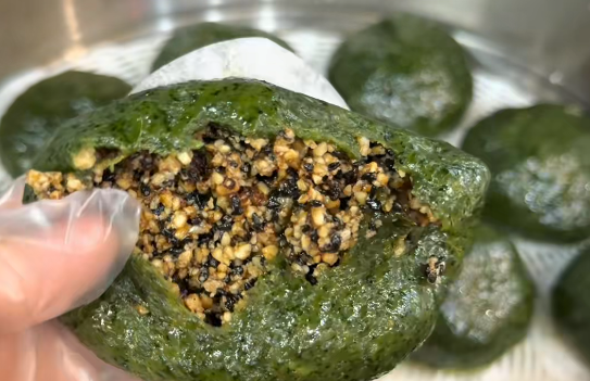 在客家人的餐桌上,艾草可算是一种常见的食材。每到春季,田头水边就会长出一丛丛艾草,这时女人们会把它们采下来,回家将糯米蒸熟之后拌入艾叶一起舂成米膏,在中间包些花生或芝麻馅,团成青绿的小粑粑蒸熟,这就成了有名的客家美食“艾糍”。