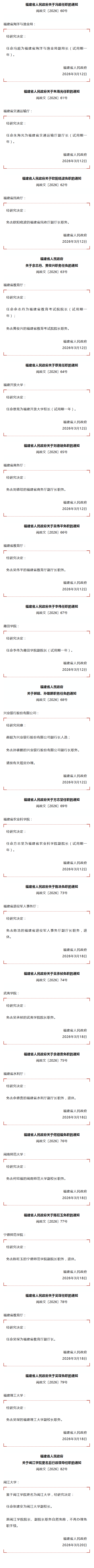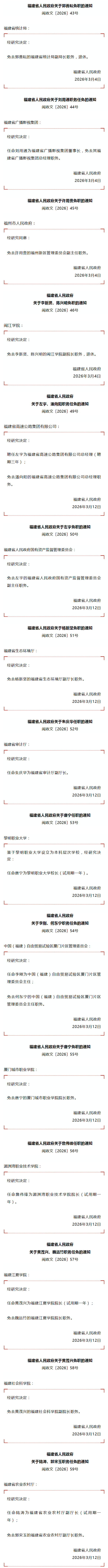 福建省人民政府发布一批人事任免