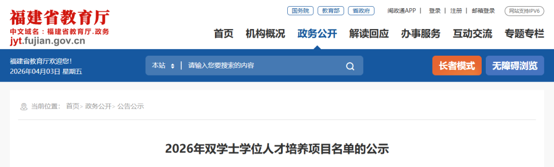 根据《福建省学士学位授权与授予审核管理办法》(闽学位〔2022〕3号),经高校申报、省学位办审核,现对38个拟新增双学士学位人才培养项目予以公示(名单见附件)。