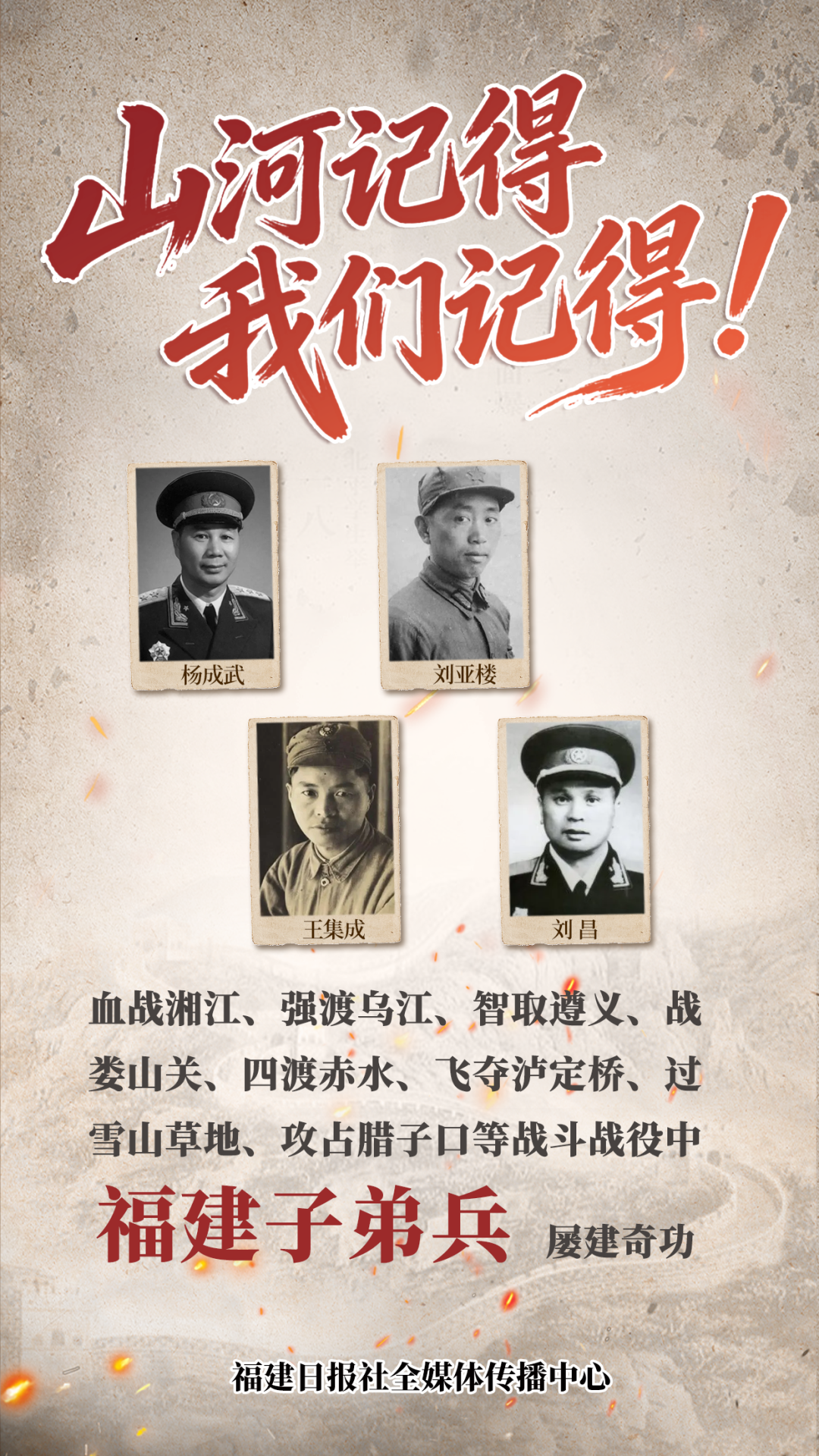 福建子弟兵在长征途中冲锋陷阵、勇往直前,用生命和鲜血为全军打开了胜利通道。长征路上的不少英雄团队和英雄个人,都有福建人的身影。