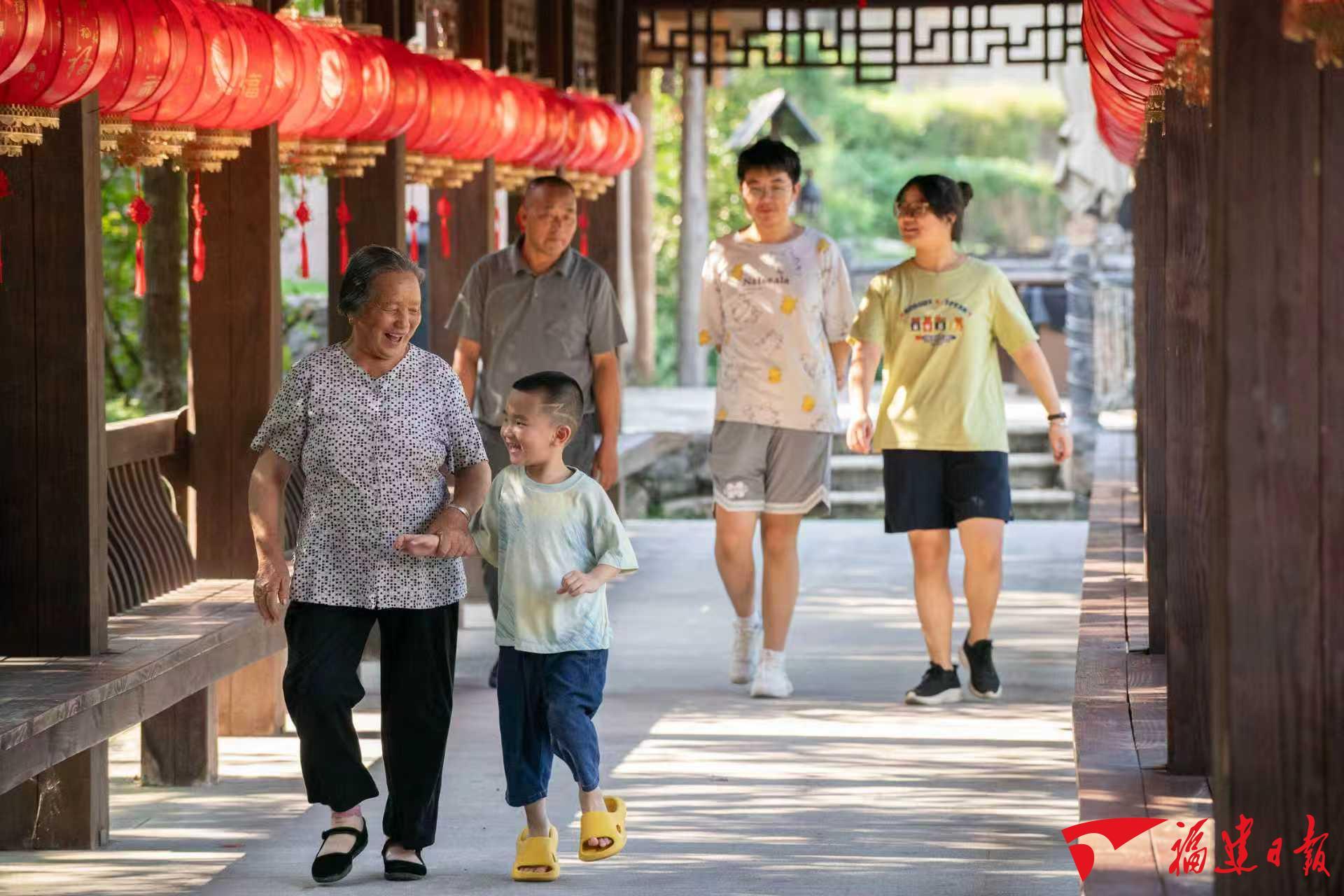 寿宁县下党乡,村民们走过长廊。福建日报记者 王毅 摄