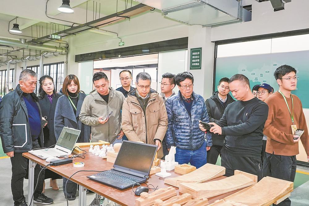 勾勒轮廓、雕刻细节、打磨抛光……日前,在政和县竹产业智创服务平台研发设计打样中心内,一台五轴数控机床正高速运转。数小时后,一块普通竹料就变成精致的如意摆件。“这台设备可以从5个方向加工立体竹制品,快速验证设计可行性和产品性能。”平台工程师曹金华介绍,中心最快两天就能完成打样,帮助企业降低成本、快速响应市场。