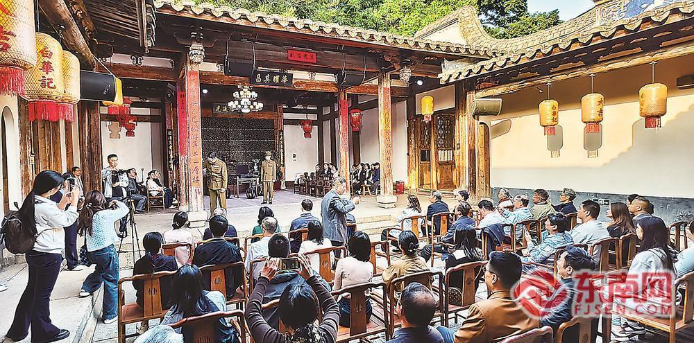这场大戏与传统镜框式舞台演出不同,没有固定的观众席。观演过程中,人们跟随演员穿梭在古厝里,或移步厅堂,或穿廊过户,在“行进+沉浸”的体验中,亲历“长江布防图传递”“台湾防务情报搜集”等惊心动魄的历史瞬间。