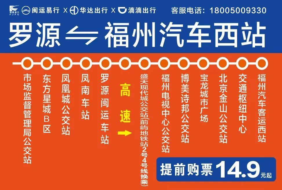 继罗源⇄福州汽车北站线路开通,罗源⇄福州汽车西站线路将上线,串联前屿地铁站(可换乘地铁2号线、4号线)、远洋路、国货东路、苏宁广场、宝龙城市广场、金山住宅区、福州汽车西站,进一步打通罗源至福州市区往返通道。