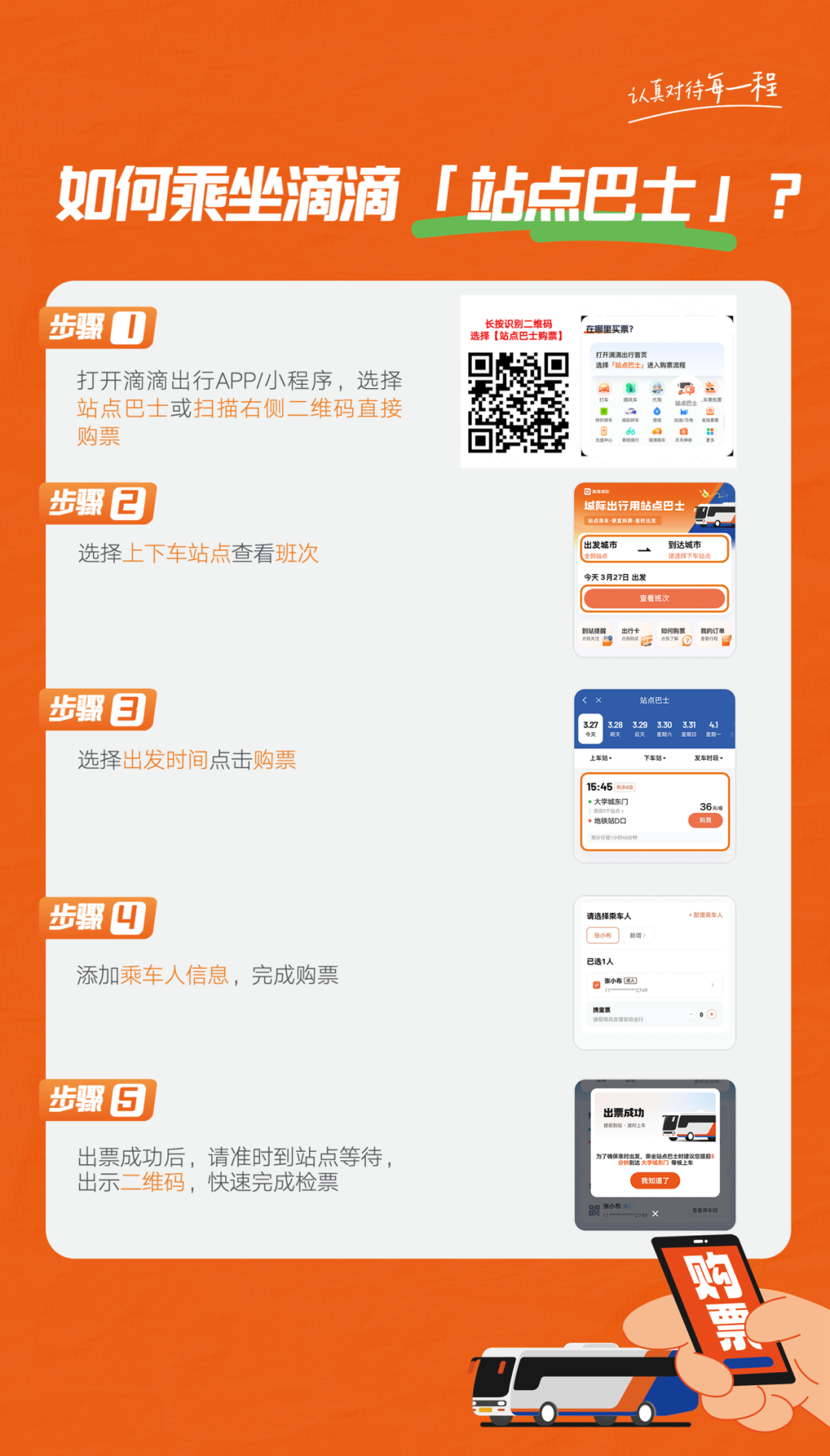 1.老年人、学生等没有智能手机的群体可由家人或工作人员帮助提前在线上购票,购票成功后保存“乘车二维码”照片或报手机号码后四位给司机即可检票乘车,同时还能看到车辆行驶轨迹,更放心。