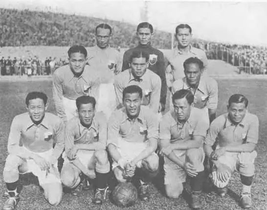 1936年,准备参加第11届柏林奥运会的中国足球队主要阵容(二排中间为陈镇和)