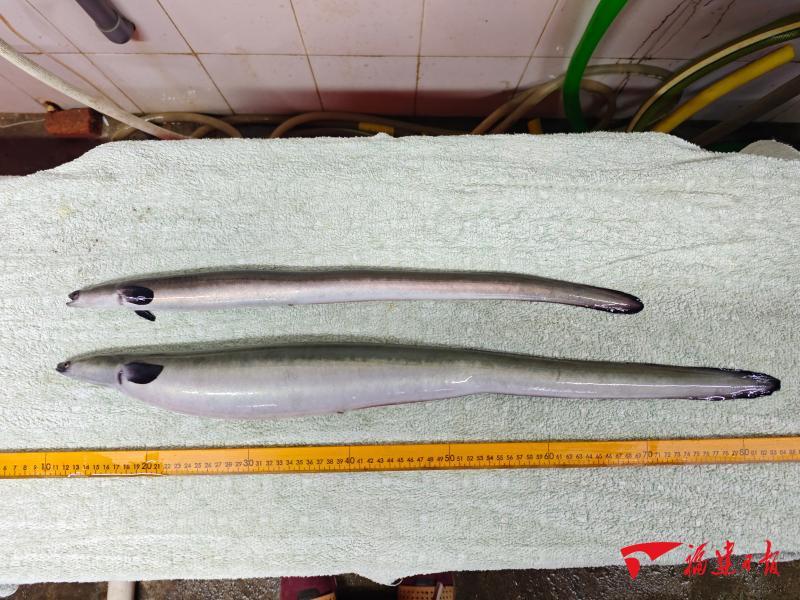 3月24日,记者走进陈仕玺教授团队的实验车间。车间里,窗帘紧闭,人眼视物非常吃力,3口人工繁育桶还用黑布作遮光处理。“鳗鲡不喜光,亲鱼和仔鱼更是。”陈仕玺教授揭开挡光布,在强光手电筒的照射下,才能稍稍看见刚孵化的鳗鲡仔鱼。只有在玻璃烧杯里,方可清晰看清它们的形态——呈透明针状,头朝上悬浮水中,如同洒入水中的点点星光。“存活数天后,它们才会躺平,呈现鳗型游姿。”陈仕玺教授拿出数尾存活6天的仔鱼进行对比并解释说,“新出生的鳗鲡仔鱼非常‘娇弱’,目前科研重心之一是研究开口饵料,通俗说就是让仔鱼快点吃饭,然后才能长大长壮。”