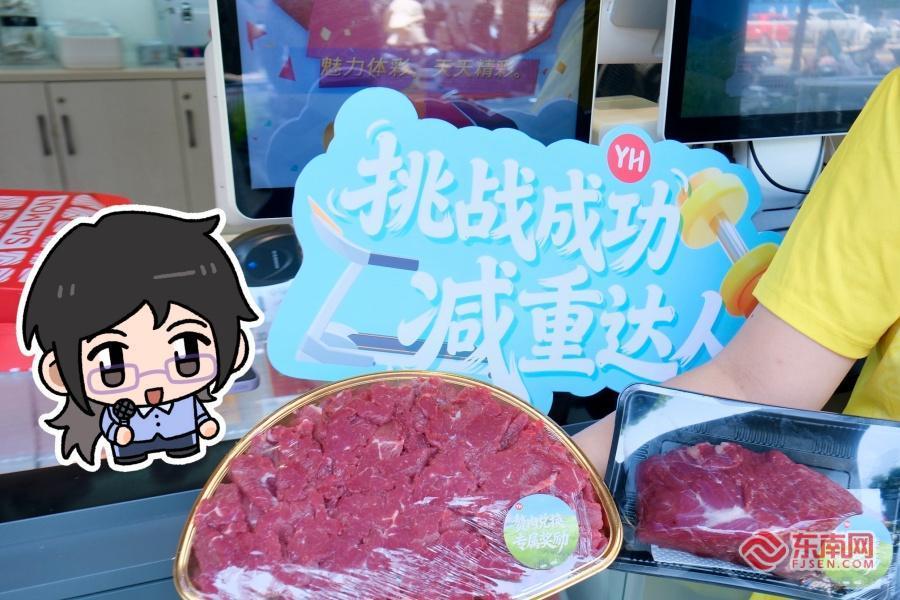 在华林店兑换区,福州市民小齐刚领到2斤鲜牛肉,她笑着向记者展示了手中的战利品,并分享了这10天的减重经验。