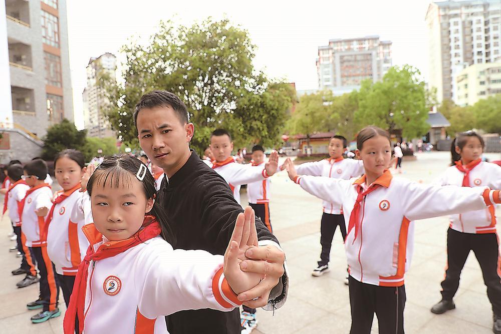 武术教练纠正动作。