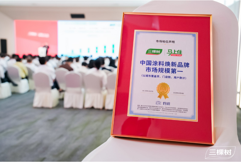 4月10日,三棵树2026年全国经销商年会在福建莆田总部举行。年会现场,知名咨询机构发布了最新行业市场洞察报告。数据显示,三棵树“马上住”凭借在城市覆盖率、门店数、用户数的亮眼表现,荣获“中国涂料焕新品牌市场规模第一”,领跑家居焕新赛道。