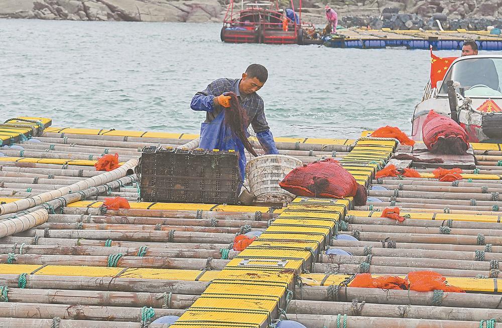 连日来,在泉州市泉港区惠屿海域养殖区,养殖工人在渔排上精心管护海参、鲍鱼等海产品,勾勒出一幅“海上春耕忙”的生动图景。