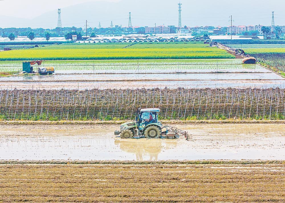 近日,在漳州市龙海区东园镇,农户驾驶农机穿梭于水田中。福建日报通讯员 陈逸帆 摄