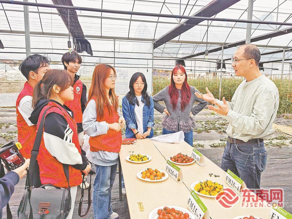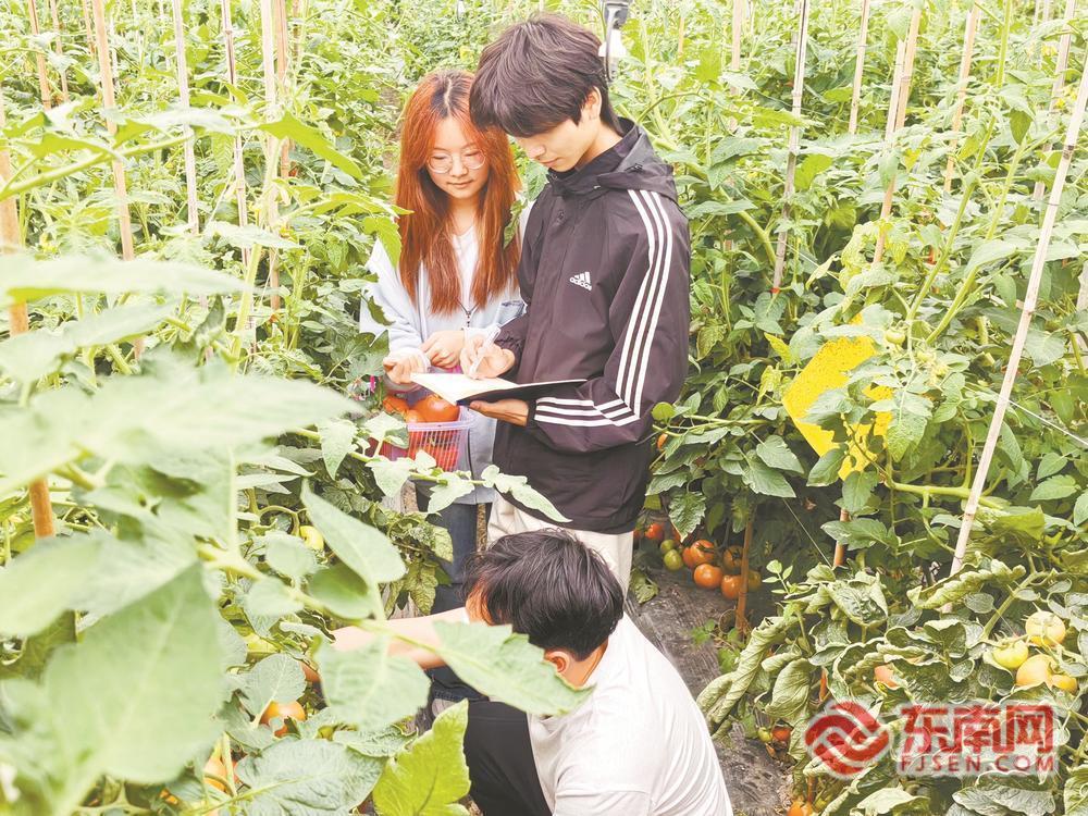 “这款番茄新品种‘紫弹头’市场反馈特别好,它两头尖尖犹如橄榄,厚实的外皮泛着紫色,汁液酸甜并存,令人久久回味。与众不同的性状,配合耐储运的果皮,是天然的电商爆品。我打算从自家的果棚入手,扩大该品种的种植面积。”指着藤蔓上挂满的小番茄,福建农林大学园艺学院本科生林圣城眼中满是期待。从小在诏安的蔬果园中长大,他怀着科技助农的梦想报考了相关专业,计划依托社会实践项目,向家乡的农户们推介良种。