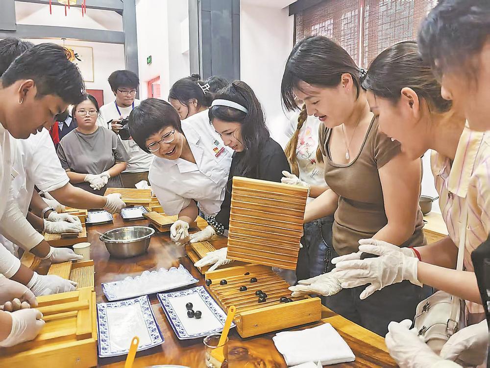 外国留学生参加闽南文化工坊,学习制作漳州卤面。