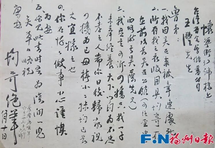 王正均绝笔书。图源:福州日报