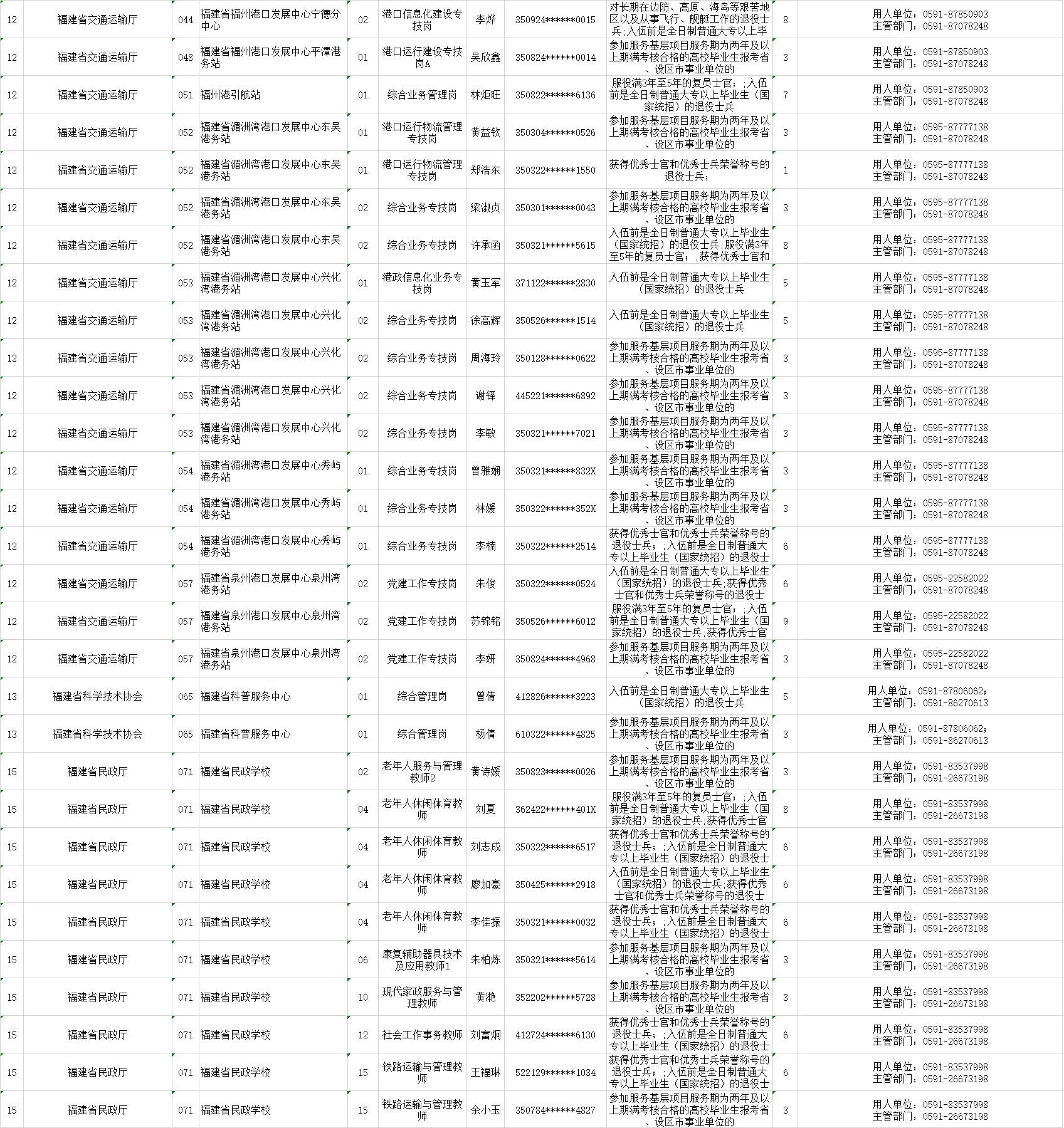 2026年福建省省属事业单位公开招聘工作人员笔试加分名单