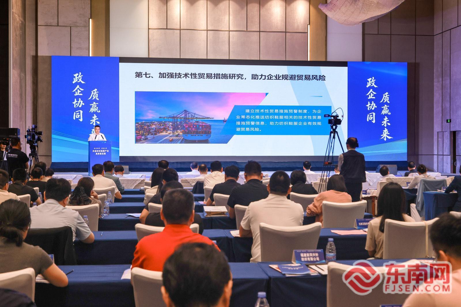 本次首场共促产业高质量发展活动,针对纺织鞋服产业推出合规指引、质量技术、知识产权三大赋能举措,梳理形成30项精准服务措施。