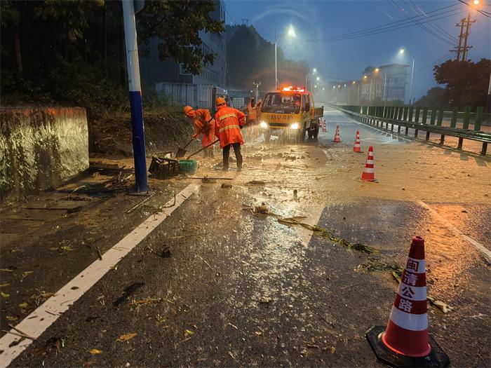 养护人员坚守一线 图源:闽清公路中心 大雨瓢泼,狂风大作,橘红色的养护身影始终坚守一线。一位参与抢险的养护人员抹了把脸上的雨水说:“雨太大了,但路上堵着,群众走不了,我们就是浑身湿透也得先把路清出来。” 经过连续数小时的冒雨奋战,截至当晚,路面淤积物基本清理完毕,辖区所有受阻路段全部抢通,道路通行秩序逐步恢复正常。 |