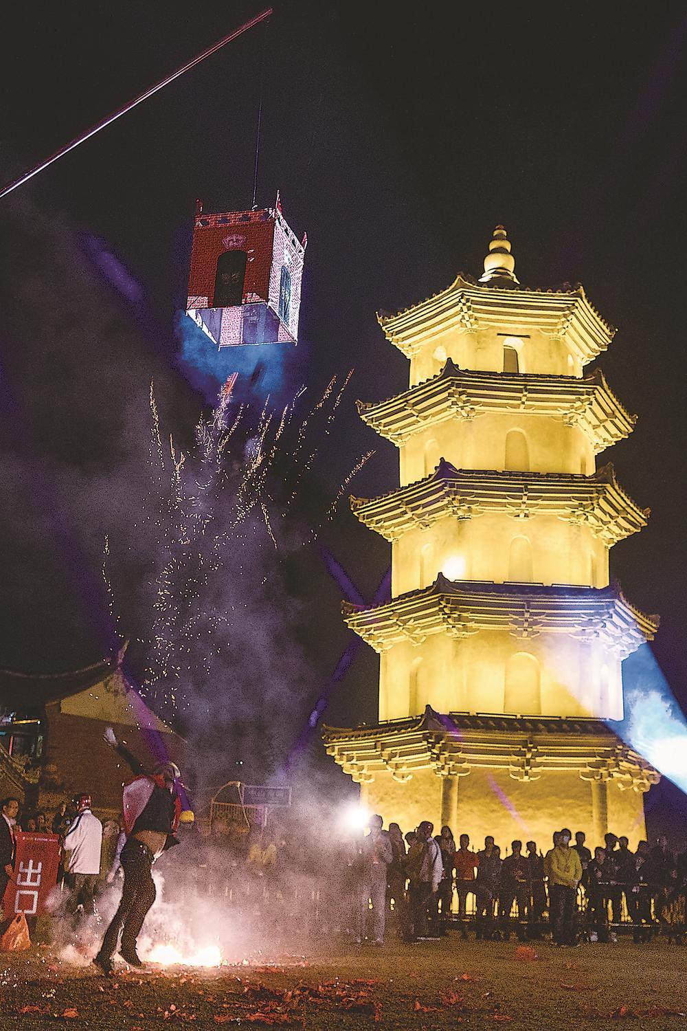 3月3日安海元宵节当晚,安平桥边灯火璀璨,白塔广场锣鼓喧天,武术表演与“攻炮城”传统民俗在这里轮番登场。相传源自郑成功军营练兵的“攻炮城”活动精彩非凡,炮手们点燃鞭炮掷向高悬的“炮城”,火星四溅,爆炸声震耳,搭配沉浸式情景表演,令人热血沸腾。