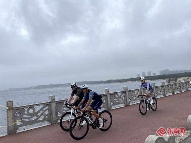 骑手经过海边。 杨舜卿有着10年骑行经验,已完成7次台湾环岛骑行。他介绍,自己去年首次从马祖经“小三通”来平潭,完成了108公里全程骑游,今年则从金门出发再度赴约,选择租赁车辆参与半程骑行。谈及平潭与台湾骑游的差异,他直言“各有千秋”:“平潭的路线坡度更大,更具挑战性,沿途的滨海风光和城市风貌也很有特色,和台湾的骑行体验完全不同。”
