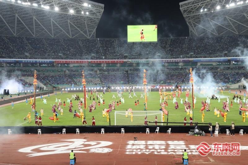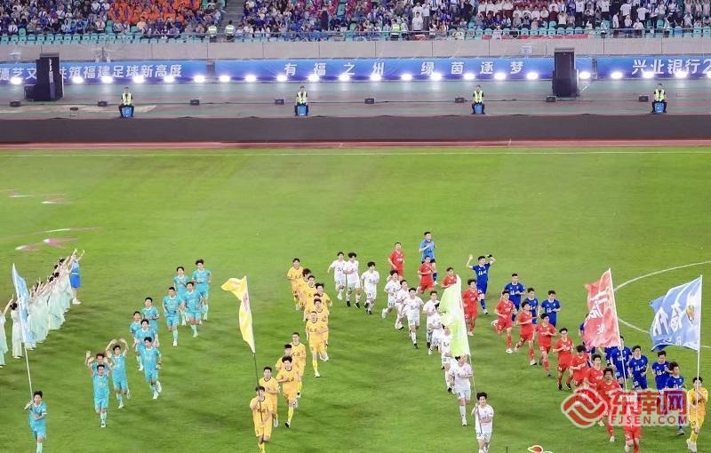 比赛现场。 4月19日晚上7时许,福州海峡奥体中心沸腾了——“闽超”正式开幕,全省10支队伍全部亮相。作为“闽超”的揭幕战,福州队和厦门队的巅峰对决在晚上7点35分开球,点燃了这个春天的足球热情。当晚的比赛到场观赛人数51342人,不仅创福建省单场体育赛事现场观赛人数纪录,还创了全国城市足球联赛揭幕战现场观赛人数纪录。现场掌声、呐喊声、助威曲此起彼伏,全场热血沸腾。 草根绿茵逐梦想,每个人都是主角 这次“闽超”最大的亮点就是——接地气!