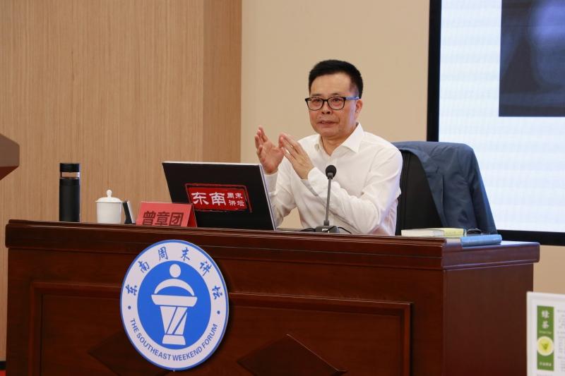 东南网4月21日讯(本网记者 郑琦)4月18日上午,福建省图书馆一楼多功能厅内茶香漫溢。由福建省社科联与福建省图书馆联合主办的“东南周末讲坛”第896期活动现场,绿茶、红茶、黑茶等六种色泽莹润的茶汤在展台上一字排开,专业茶艺师端坐茶席前,为在场读者奉上一盏盏好茶,福建省文联党组成员、书记处书记、副主席曾章团以“穿越《茶经》觅茶香——非遗视域下的福建茶文化”为题,与现场读者一同走进积淀深厚的中国茶文化。