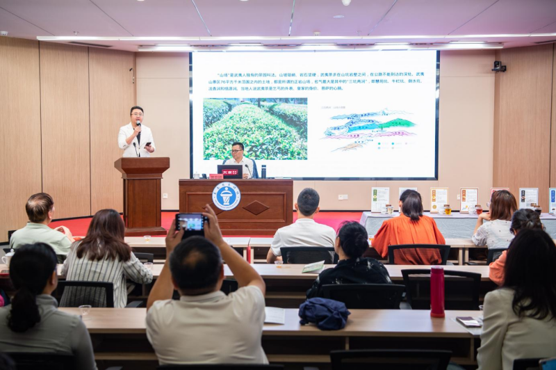主讲人曾章团 而作为中国茶文化的重要发祥地,福建在中国茶史中留下了浓墨重彩的篇章。曾章团以泉州南安一方早于《茶经》三百余年的“莲花茶襟”摩崖石刻、万里茶道起点武夷山,以及福州、厦门等重要的茶叶贸易港口为例,点明了福建茶历史之悠久、底蕴之深厚,随即便以福建六大代表性茶品为例,为读者逐一详述闽茶的独特魅力:“茶石共生”的环境孕育出武夷岩茶独特的“岩骨花香”;花茶层叠的窨制工艺让福州茉莉花茶香气扑鼻;安溪铁观音的半发酵制茶工艺可谓别具一格;福鼎白茶以自然萎凋保留本真滋味;坦洋工夫茶工艺严谨,红汤红叶温润甘醇;漳平水仙茶则是中国唯一的乌龙茶紧压茶。曾章团对闽茶底蕴如数家珍,他结合自身著作《武夷三十六茗》《守艺茶天下——武夷岩茶记》,向读者进一步分享深耕福建茶文化的经历与感悟。“一杯茶虽然很浅,却往往能带出更为深邃的东西,令人回味无穷。”在他看来,茶连接着贵族、文士等不同的社会阶层,从宫廷茶宴的庄重到文人茶事的清雅,从民间吃茶的质朴到茶禅一味的空灵,茶早已超越饮品,而成为社会交往、文化传承的中介,在此过程中,中国传统“天人合一”“惜物敬天”“中和”等思想与观念也深深融入了茶文化,茶进一步成为承载中国人生活哲学与审美追求的文化符号。